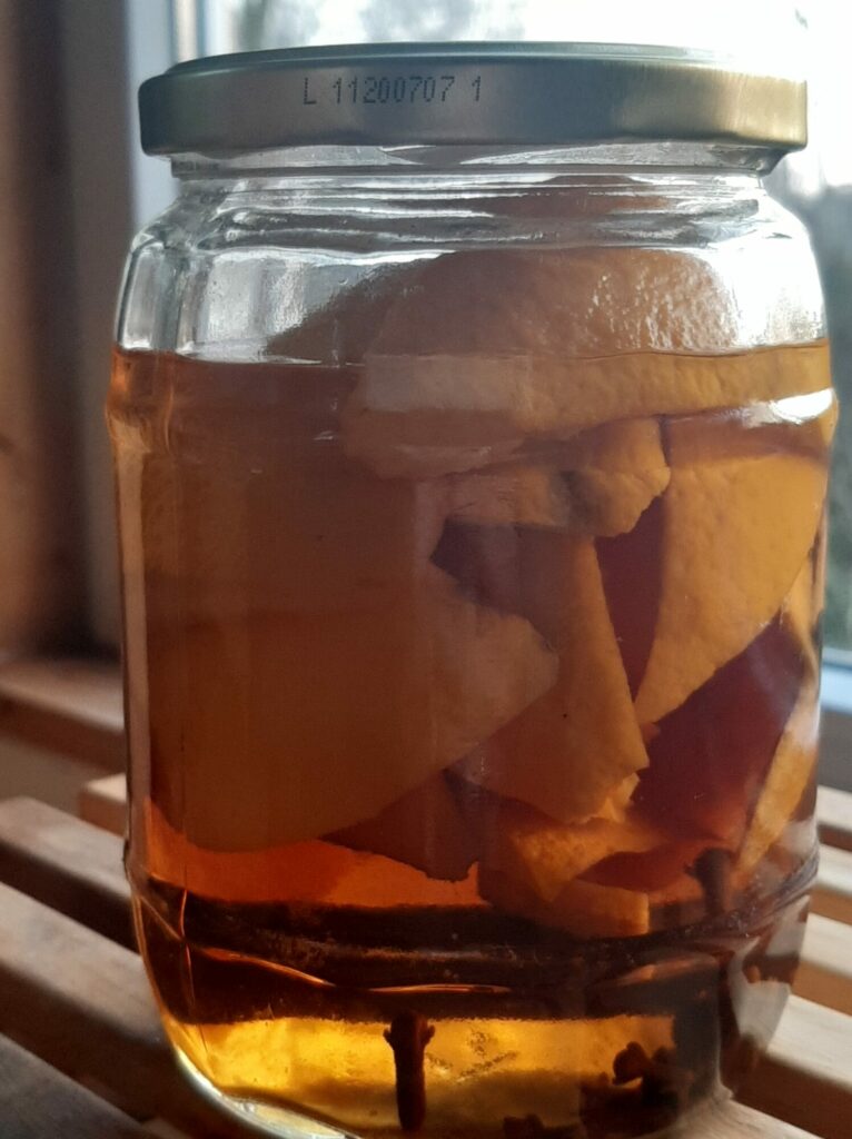 Instead of a tincture, you can also add essential oils to the liqueur alcohol. This is also a good variant and less effort, but finally more expensive than the original. You can create your own scents and use organic quality. Use for example: lemon, orange, clove, cinnamon, copal et cetera …
